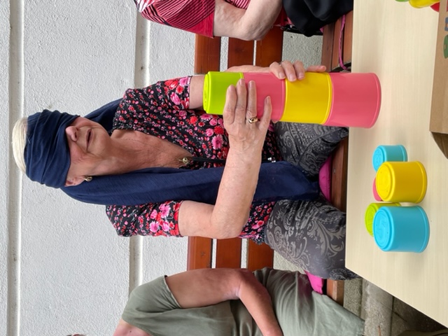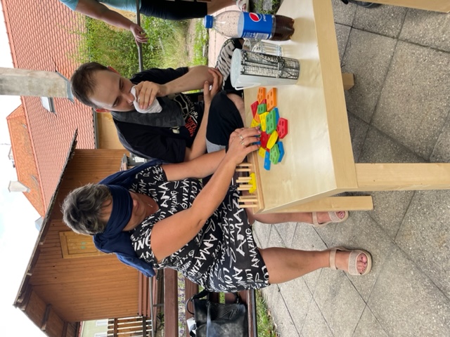 První červencový prázdninový den jsme tedy pozvali rodiny a zahájili odpoledne sportem. Hráli jsme kuželky, trefovali se míčky do různých otvorů, poznávali jsme naše smysly, ať už při ochutnávce různých pochutin nebo při stavění stavebnic se zavázanýma očima. Po splnění všech disciplín byli vyhlášeni nejlepší sportovci, kteří obdrželi sladkou odměnu. Protože bylo velké teplo, rádi jsme se občerstvili melounem a cuketovou buchtou, kterou jsme společně upekli.