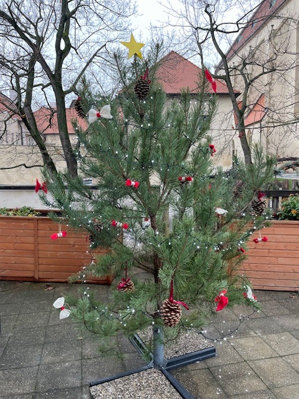 Součástí programu byl také adventní jarmark v areálu školy na Horní České, kde panovala příjemná předvánoční atmosféra. S blížícími se Vánocemi jsme se intenzivně věnovali pečení – připravovali jsme těsta, pekli perníčky, vanilkové rohlíčky, linecké cukroví i vánočku. Společně s dětmi z mateřské školy jsme také zdobili vánoční stromeček.